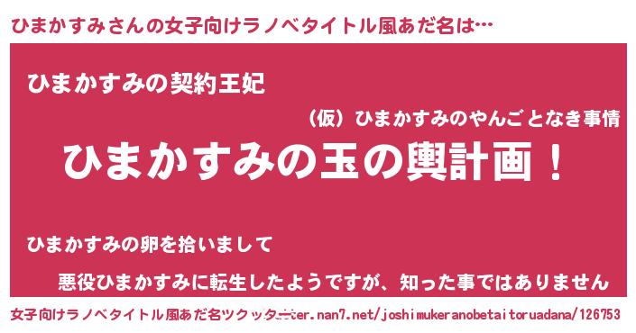| ヒーロー風カッコイイあだ名 | 『ネオヒマカスミ』『仮面ヒマダー』 |