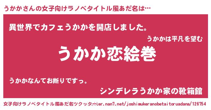 | ヒーロー風カッコイイあだ名 | 『愛の使者うかか』『ネオウカカ』 |