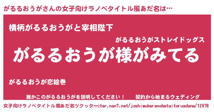 | 男性向けラノベタイトル風あだ名 | 『がるるおうがの嫁は女の子じゃないと思った?』 |