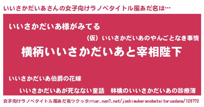 | 肩書あだ名 | 『いいさかだいあプロデューサー』 |