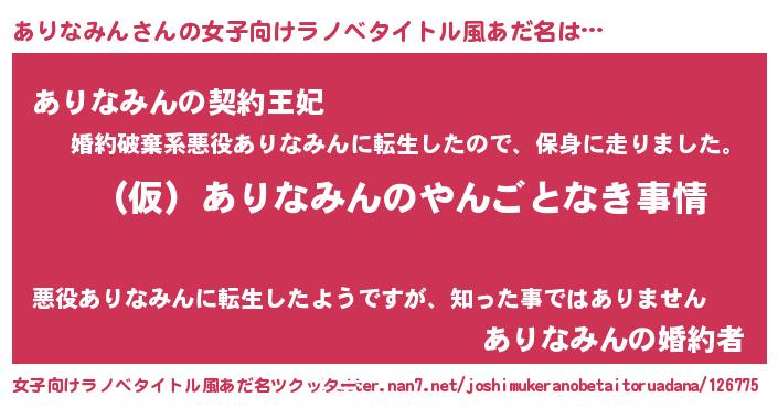 | 男性向けラノベタイトル風あだ名 | 『ありなみんの憂鬱』 |