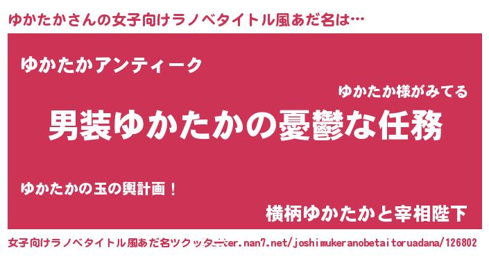 | 意味不明あだ名 | 『自称ゆかたか』『なめこ科ゆかたか属』 |
