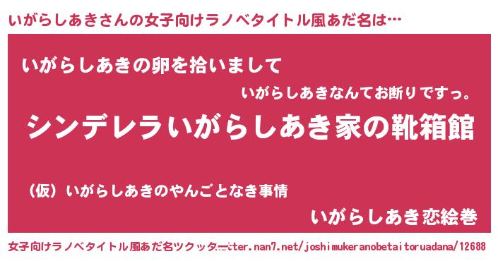 | 胡散臭い通販商品みたいなあだ名 | 『信頼と実績のサプリメント…その名も「いがらしあき」』 |