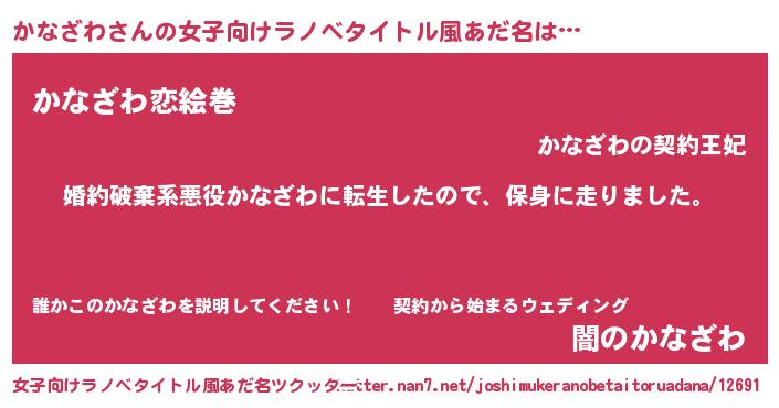 男性向けラノベタイトル風あだ名 | 『カナザワスレイヤー』 |
