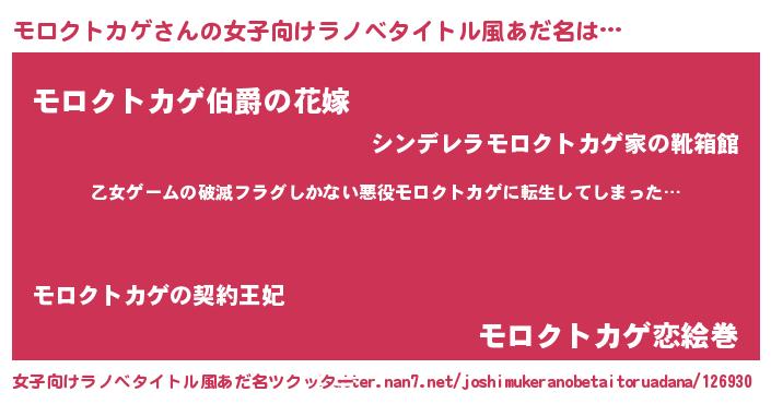 | 男性向けラノベタイトル風あだ名 | 『この素晴らしい世界にモロクトカゲを!』 |