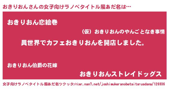 | ヘコむあだ名 | 『おきりおん(笑)』『おきもー』 |