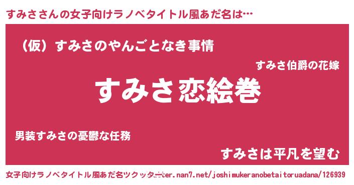| 男性向けラノベタイトル風あだ名 | 『おまえをオタクにしてやるから、俺をすみさにしてくれ! 』 |