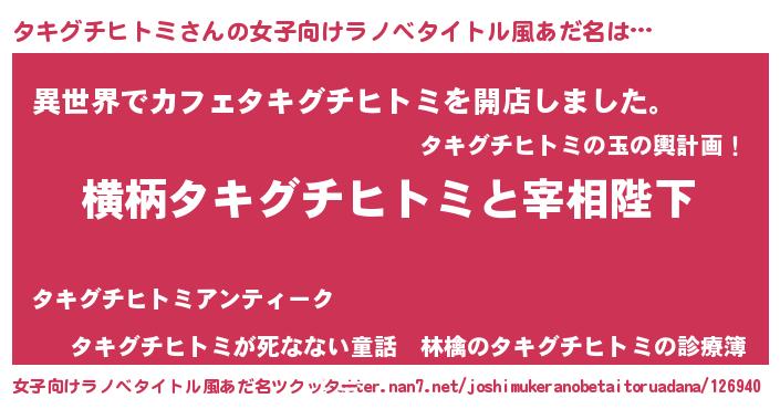 | 男性向けラノベタイトル風あだ名 | 『タキグチヒトミに滅ぼされるだけの簡単なお仕事です』 |