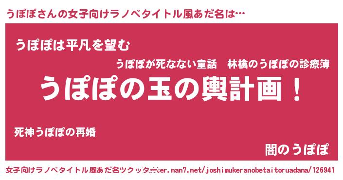 | 男性向けラノベタイトル風あだ名 | 『転生したらうぽぽだった件』 |