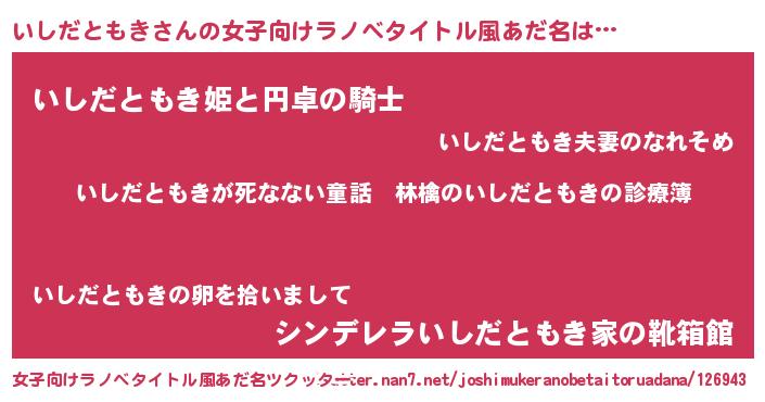 | 意味不明あだ名 | 『住所不定無職いしだともき(2歳)』 |