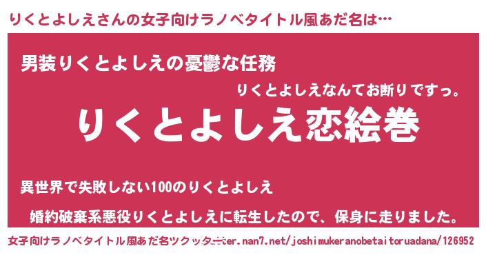 | 肩書あだ名 | 『りくとよしえ助教授』 |