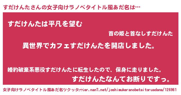 | 男性向けラノベタイトル風あだ名 | 『誰もが恐れるあのすだけんたが、ぼくの専属メイドになるようです。』 |