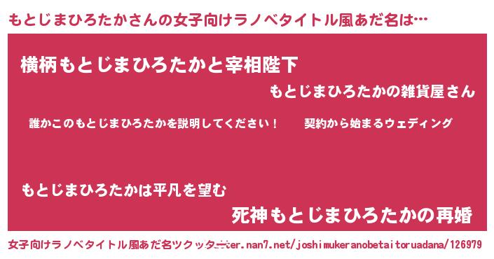 | 男性向けラノベタイトル風あだ名 | 『モトジマヒロタカアートオンライン』 |