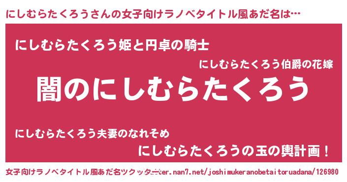 | 意味不明あだ名 | 『自称にしむらたくろう』 |