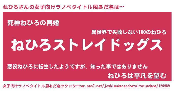 | ヒーロー風カッコイイあだ名 | 『最強戦士ネヒロ』『友情の使者ねひろ』 |