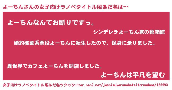 | ヘコむあだ名 | 『よーを』『よーちん(爆)』『豆乳』 |