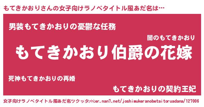 | 男性向けラノベタイトル風あだ名 | 『やはりもてきかおりの青春ラブコメはまちがっている 』 |