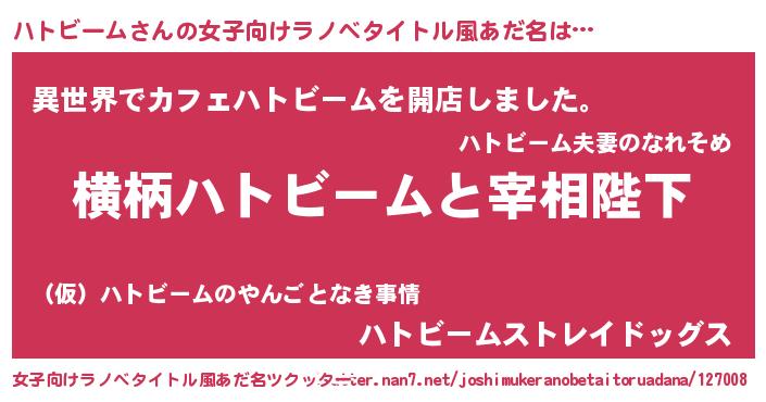 | 男性向けラノベタイトル風あだ名 | 『ハトビームに滅ぼされるだけの簡単なお仕事です』 |