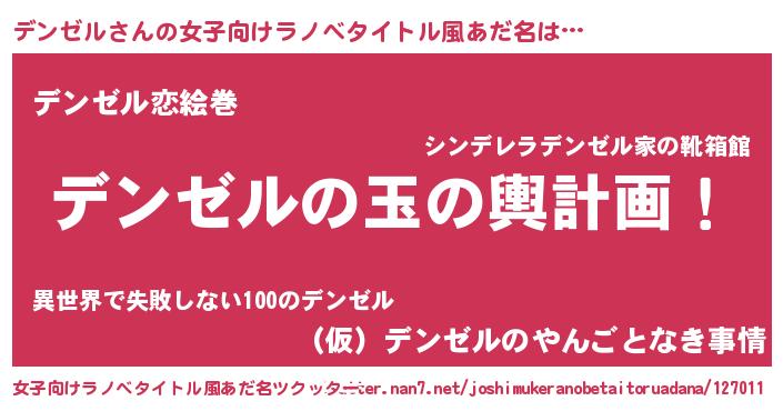 | 男性向けラノベタイトル風あだ名 | 『転生したらデンゼルだった件』 |