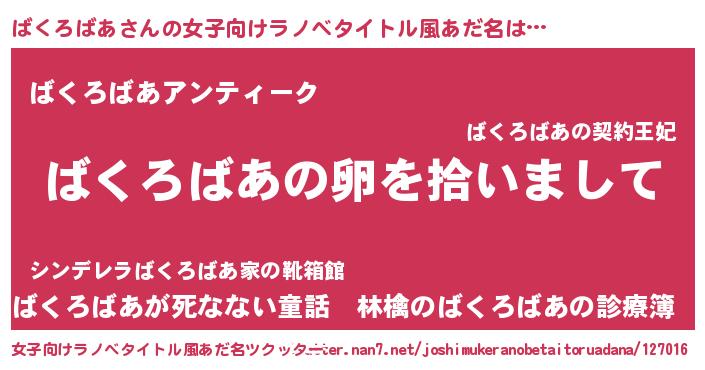 | 意味不明あだ名 | 『とにかく怪しいばくろばあ』 |