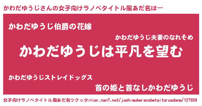| 男性向けラノベタイトル風あだ名 | 『ダンジョンにかわだゆうじを求めるのは間違っているだろうか』 |