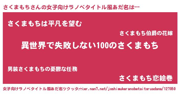 | ヘコむあだ名 | 『さくまもち(笑)』『さくを』『豆乳』 |