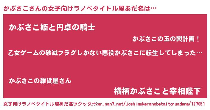 | 男性向けラノベタイトル風あだ名 | 『魔弾の王とかぶさこ』 |