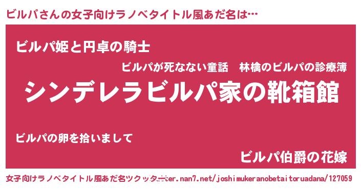 | 男性向けラノベタイトル風あだ名 | 『冴えないビルパの育てかた』 |