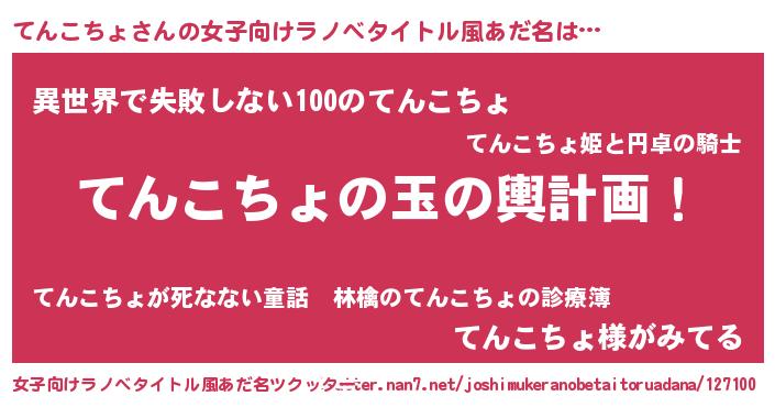 | 男性向けラノベタイトル風あだ名 | 『転生したらてんこちょだった件』 |