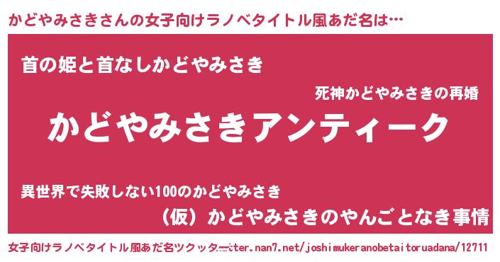 | 意味不明あだ名 | 『自称かどやみさき』 |
