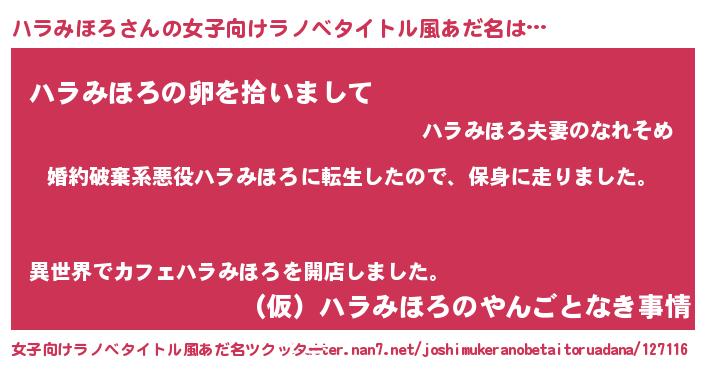 | 男性向けラノベタイトル風あだ名 | 『ハラミホロスレイヤー』 |