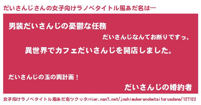 | 男性向けラノベタイトル風あだ名 | 『誰もが恐れるあのだいさんじが、ぼくの専属メイドになるようです。』 |