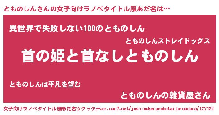| ファンタジー風あだ名 | 『トモディッシュ』『ゼトモトゥ』 |