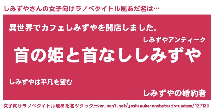 | 男性向けラノベタイトル風あだ名 | 『はたらくしみずやさま!』 |