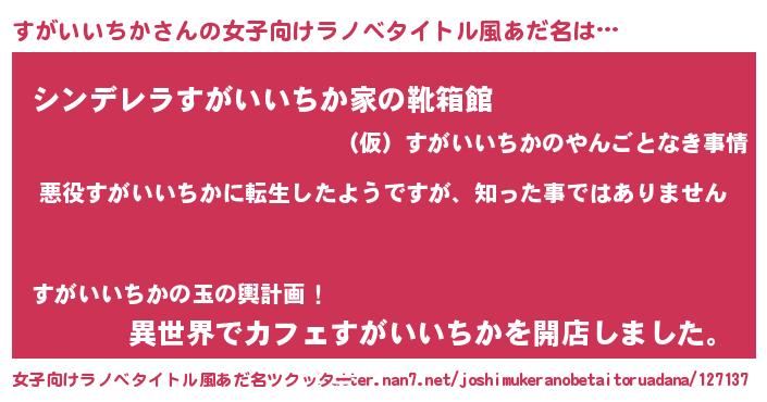 | 男性向けラノベタイトル風あだ名 | 『この素晴らしい世界にすがいいちかを!』 |