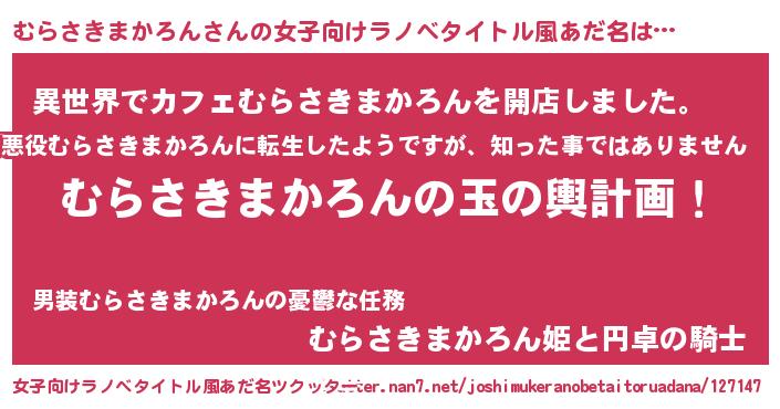 | ヘコむあだ名 | 『むらさきまかろん(笑)』『むらにゅー』 |
