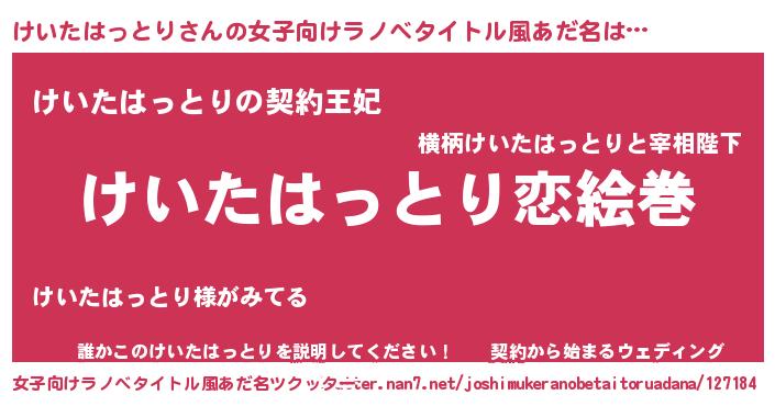 | 男性向けラノベタイトル風あだ名 | 『ノーゲーム・ノーケイタハットリ』 |