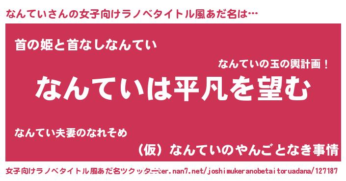 | ヒーロー風カッコイイあだ名 | 『暗黒騎士ナン』『スーパーナンテイ』 |