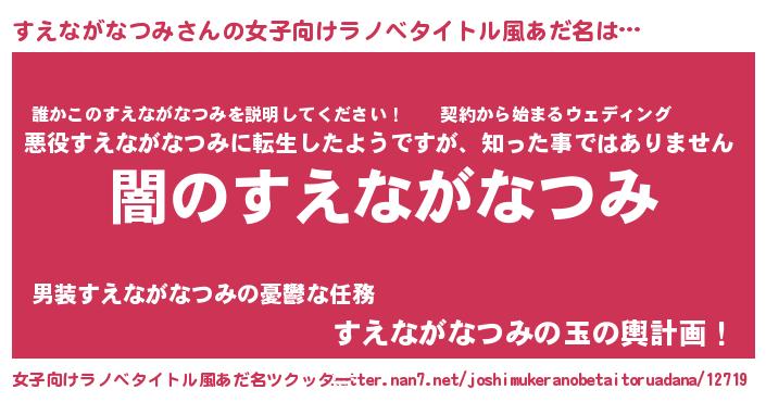 | 男性向けラノベタイトル風あだ名 | 『Re:すえながなつみから始める異世界生活』 |