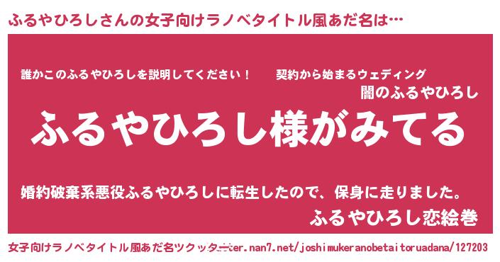 | 男性向けラノベタイトル風あだ名 | 『ふるやひろしの嫁は女の子じゃないと思った?』 |