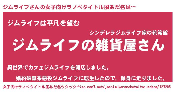 | 男性向けラノベタイトル風あだ名 | 『やはりジムライフの青春ラブコメはまちがっている 』 |