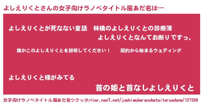 | 男性向けラノベタイトル風あだ名 | 『ヨシエリクトアートオンライン』 |