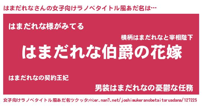| 男性向けラノベタイトル風あだ名 | 『やはりはまだれなの青春ラブコメはまちがっている 』 |