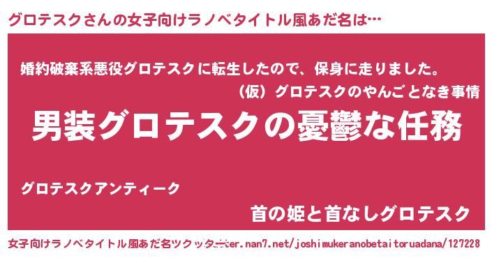 | 男性向けラノベタイトル風あだ名 | 『うちのグロテスクが世界を掌握している!』 |