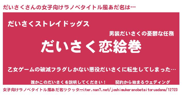 | ヒーロー風カッコイイあだ名 | 『慈愛の使者だいさく』『仮面ダイダー』 |