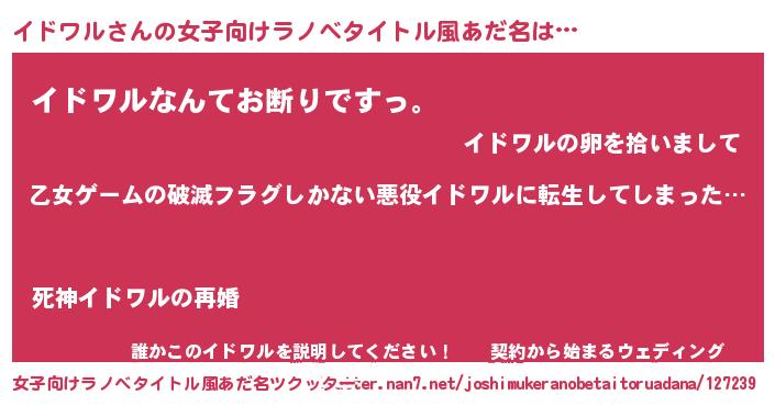 | 男性向けラノベタイトル風あだ名 | 『魔弾の王とイドワル』 |