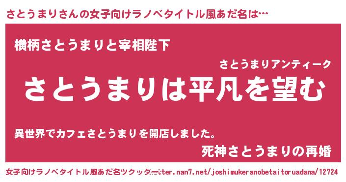 | 男性向けラノベタイトル風あだ名 | 『ダンジョンにさとうまりを求めるのは間違っているだろうか』 |