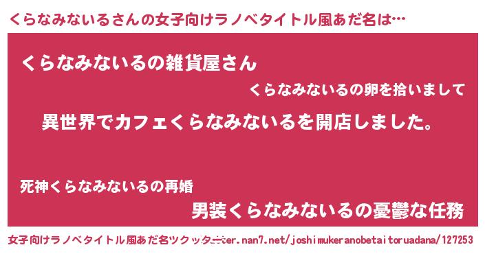 | ヘコむあだ名 | 『くらなみないる(小並感)』『レバニラ』 |