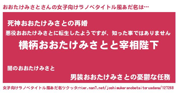 | 男性向けラノベタイトル風あだ名 | 『おおたけみさとに滅ぼされるだけの簡単なお仕事です』 |