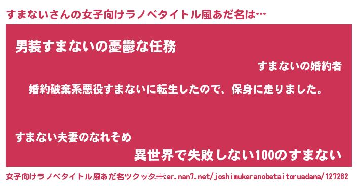 | ヒーロー風カッコイイあだ名 | 『ネオスマナイ』『ウルトラすまないマン』 |